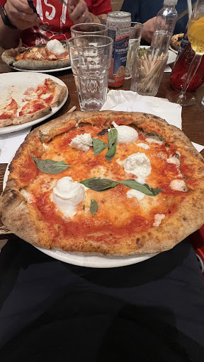 The Pizza: For a pizzeria that markets itself on high standards, the pizzas were shockingly underwhelming. The crust was either overcooked or, worse, soggy in the center, making it nearly impossible to enjoy. The toppings, while listed as âpremium,â felt anything but. Bland flavors, uneven distribution, and a general lack of freshness did not justify the premium prices at all, and no salt at all. Atmosphere: The ambiance, often described as cozy and authentic, was sorely lacking. Instead of a warm, inviting space, we found a chaotic, noisy environment that seemed poorly managed. The lighting was too dim, and the layout seemed cramped, leaving little room to relax and enjoy the meal. It felt more like a rushed fast-food setting than an upscale pizzeria experience.