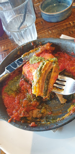 Food was amazing! Good size portions and reasonably priced! Would have been an awesome experience all round however - we found our waitress was in no way warm or courteous towards us. Now, we're not looking for a full blown conversation or, for all of her attention to be on us, but witnessing her demeanour change from friendly to other guest and then rather cold to us, left us feeling like we had done something or said something wrong. We were never asked if everything was okay; we were never asked if we wanted any more drinks; we had to ask for if we could order dessert and be given a menu, despite our son being on the set course kids meal. The desserts came whilst my wife had taken my son to the toilet - which is of course fine, however I do take issue with the way the waitress put the Ice cream for my son on the table and left abruptly, without even a look, or waiting to hear if I had any other requests, or even just for me to say thank you. At the end of the meal we had not asked for the bill but, the waitress came over with the payment terminal and asked for our vouchers. We were never told how much the meal was or given a paper copy of the bill. We were also never given the chococino that should have been part of the set kids meal. When paying, the waitress took the terminal away twice too quickly which resulted in failed payments. When she did finally leave the terminal in position long enough for the payment to go through, she again left abruptly not waiting for us to say thank or even say goodbye. We didn't even get a final receipt nor were we asked if we wanted one. As I said, food was amazing! Great vegan and non vegan options. The rainbow lasagne was incredible! But, it is sad to say that the whole experience was marred by the service of this waitress, whom we feel seemed to take issue with us, although I hope that this is not the case. Other staff members appear to be friendly towards us, so it really left us baffled. Such a shame as we usually go to another restaurant down the road from here and fancied a change. Unfortunately we won't be coming back...