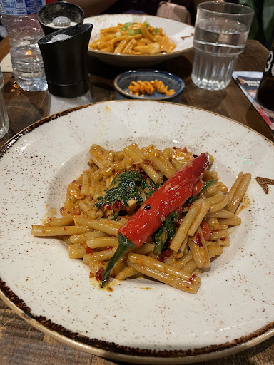 The atmosphere was lively for a 9 pm visit. Food came out fast and service of the food was great. I gave mid-grade scores because The menu was VERY limited. There were very few items on the menu for anyone who has dietary restrictions. I am intolerant to milk and also can't have tomato based sauces due to acid reflux. I wish there had been a pasta on the menu with a garlic oil sauce or even that they simply made carbonara the traditional way instead of with milk. Garlic bread was literally the only item on the menu I could get. I just find it strange that in such a big city where so many tourists frequent that the options were so few and the staff seemed not to be able to let me know if there was milk in certain menu items. I understand that my allergies are not mainstream so don't hold the staff accountable for this in any way. Just if they could have come up with a quick fix such as making me a nice pasta with olive oil, herbs, a bit of lemon or any kind of offer to make something work would have been appreciated. Overall it was a great feel in the space but I cannot comment on the quality of the food other than the garlic bread which was good but dry. Had to ask for garlic butter to get it down. Just know that if you have any secondary dietary restrictions this is not the Italian restaurant for you. Everyone I was with however seemed to enjoy their food a lot so hope...