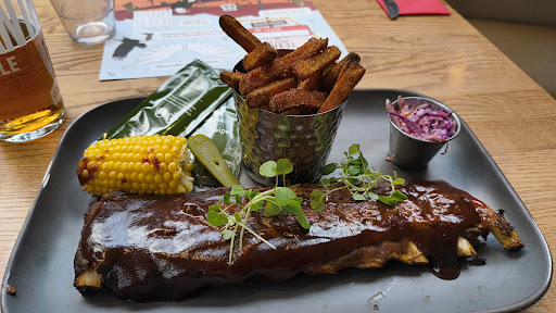 Atmosphere, difficult to tell when we were crammed in to a table off in the fast distance looking out of the establishment, however, we were so close to the table next to us that I could hear the fella sucking every ounce of flesh, skin and fat off of the baby back ribs he had and clearly enjoyed (perhaps this is an isolated negative review).