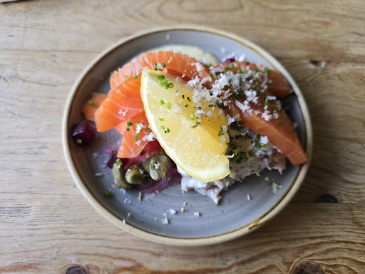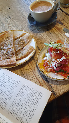 Read moreA really unexpected gem! I'd passed this place the day prior, and must admit I wasn't drawn to it from the outside, thinking it was just a generic coffee stop with not much character and just not my cup of tea (no pun intended). However, I passed again today and thought I'd stop in for a quick coffee as I was freezing, and was totally surprised by it in every way. The staff were really friendly, helpful, accommodating (fitting me in between bookings) and also super patient (with my stream of questions as to whether their oat milk was gluten free, whether they did decaf and also gluten free food), and with a nice vibe inside, I thought the menu was definitely worth a perusal. Not the type of menu I was expecting at all, with a lot of unusual and extremely tempting dishes. I opted for the small dish of the chicken shawarma with a side of gf flatbread, and wow! My taste buds were not expecting those flavours at all, it was divine, and I made sure to enjoy each mouthful fully. What started out as a potential stop for a quick coffee turned out to be one of the most enjoyable of hours of my trip. Fab service from people who genuinely seemed to care paired with good coffee, delicious food and a very enjoyable book for company! Thank you Emma and the rest of the team for a thoroughly...