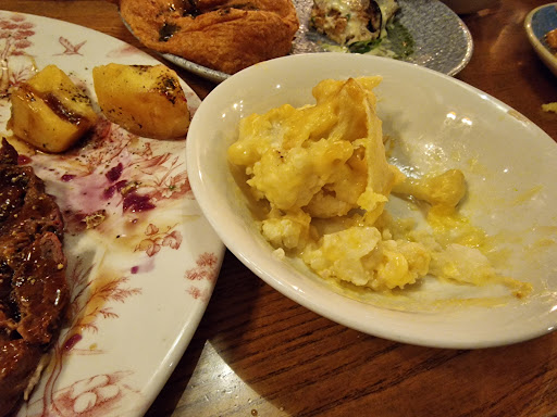 The reason for the "Food 2 Star" rating.!! I ordered the Beef Rib Sunday Lunch meal which was awful.! On the menu it says the beef is cooked for 7 hours and I can quite believe that, because whilst the meat was well cooked but lacking in taste, the bone protruding from the middle of it looked disgusting. The "roast potatoes" looked anemic as though they had only seen the oven for a few minuets being sodden in cooking oil or cooking fat as was the Yorkshire pudding. Both tasted of oil or fat.! The vegetables had been diced(as that which you might give a child) and were soggy apart from the parsnip which were whole but when I bit into it, it wasn't aldenta', it wasn't cooked.! Sadly I gave up on the meal after about 5 minuets. The is no excuse for poorly cooked food.!!