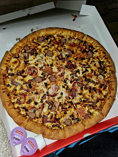 Read moreNow this, is a naughty pizza. This is the alligator pizza with the hot dog stuffed crust 18" (Tip, do what I did and order off the app as you get a further 10% off with the collection order, that meant this cost a cheap £11.55 all in) and as shown in the photos it is well topped too. The dough wasn't horrible it was actually really nice, stuffed crust was neat too, baking hot, these guys care about your pizza.