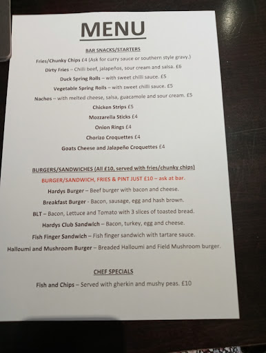 Read moreThe chip shop was unexpectedly closed so I tried Hardys to see if they did takeaway. They told me everything on the menu could be taken away so I ordered fish and chips and two children's meals. The food was cooked quickly and even wrapped in paper. I was so thankful that I didn't have to cook or drive any further for a chip shop! Portions are huge and...