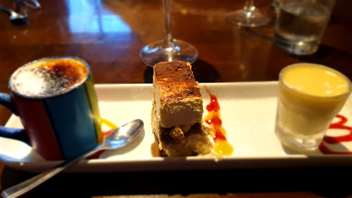 We were given bread as we sat down that was stale and we were unable to eat it. We both chose the pork in red wine jus and asked for it to be cooked so there was no pink in it but was also tender. When our server told the chef we heard him complain about this request. It is entirely possible to cook pork well but retain the flavour and soft texture. Unfortunately the pork was chewy and the red wine jus had not been reduced enough and so smelled and tasted of red wine. The vegetables had not been seasoned, just partially boiled and so the carrots were nearly raw.