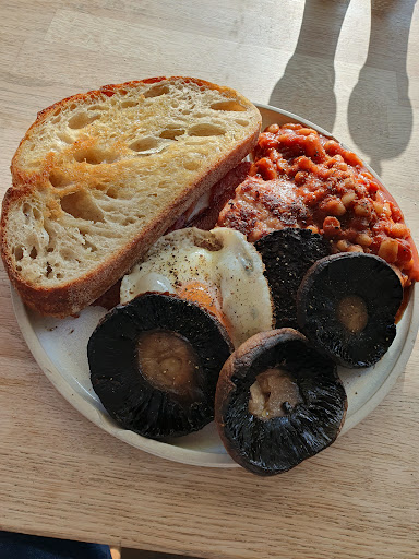 We ordered the veg Shashuka, the fried egg on sourdough with truffle oil and a side of the grilled mushrooms to share.