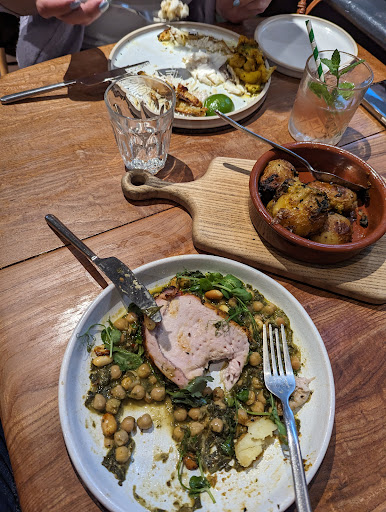 Pork loin with chickpeas, and whole cornish sole with romanesco, both superb. Roasted Bombay potatoes were a highlight also, very buttery and well cooked as was everything else. It really captured the taste of India, but in a way that is far removed from your traditional Indian takeaway, which I hope is taken as a compliment. Dessert too, bitter chocolate tart with tahini cream, ever moreish after every bite, and cardamom Panna cotta with plums, very fresh and very surprising.