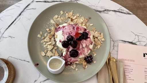 Rise is a small cafe with indoor and outdoor tables. The interior decor has a lovely summery feel to it and feels welcoming from the get-go. Upon arrival you can sit where you like; the separate food and drinks menus are at the till and once you've decided you can put an order in at the same place where one of the two lovely female staff will take your order. If paying by card, they accept AmEx.
