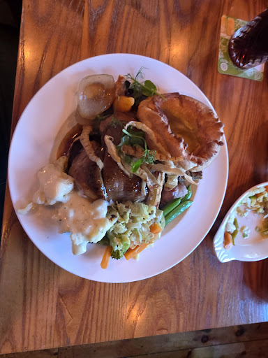 Read moreRoast beef for Sunday lunch came with separately plated veggies,peas.carrots.dauphanise potatoes broccoli then roasted potatoes & Yorkshire pudding plated with the meat. All very tasty and plenty of it. Just sat by the fire now watching the rugby waiting for room for a pudding to fit, which I'm sure it will as ive been told there is a lemon meringue pie on the list. We'll be back and wish the new manager well..keep the home fireworks roaring...
