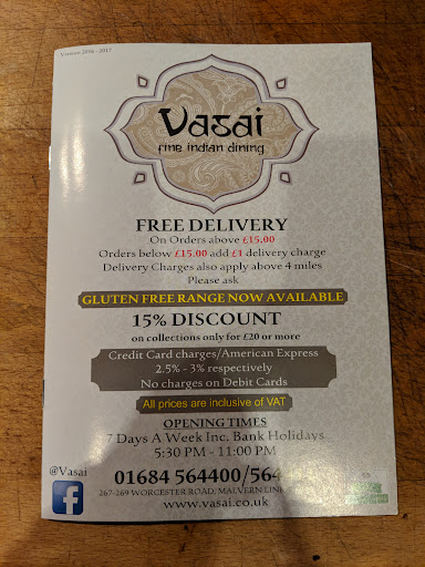12 Vegan Main Dishes to pick from. We planned 2 days walking in the Malvern Hills and and as my Wife is a Vegan we had to find somewhere for Breakfast and Evening Meal as we stopped at the Premier Inn Malvern and didn't fancy their Food. As the first night was a Sunday a lot of the Restaurants were closed however Vasai an Indian Restaurant on the main Worcester Road was not only open it had Vegan Options so we reserved a table. Luckily there is a Public Free Car Park approx 5 minutes walk from Vasai so we parked there and made our way to Vasai. Once there we were shown to our table and given the Menue and were amazed to find there were 12 different Vegan Main Meals which delighted my Wife. We ordered our Main meal and were surprised that it was put in front of us within 10 minutes and it was lovely tasty food. The owner Ali checked that we were happy with our meals, we were very pleased and booked again for the Monday night and that also a super meal......we would highly recommend it for Vegan Diners and we will dine there again when we return in 2022 for more Hill Walking. Also just 5 minutes from Vasai is The London House Cafe which does a Full English Vegan Breakfast which we used...