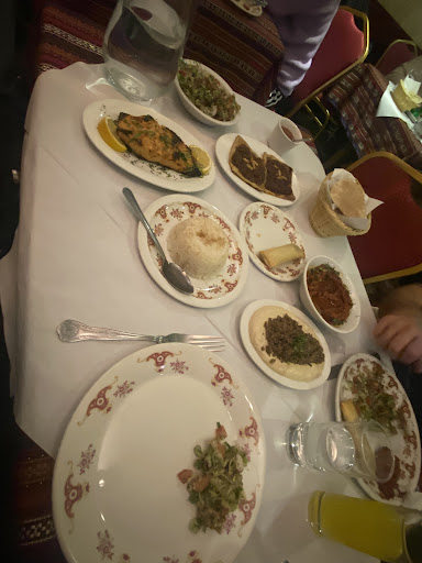 I don't like leaving bad reviews but this was bad. My son called ahead and booked our table (he has a clearly Muslim name btw). Immediately on entering we didn't feel welcome and I guess we were not the usual clientele. We were placed upstairs although downstairs was quite empty. The starter of hummus came quickly (bread was hard and cold) then there was a long wait for mains . Just before we got the mains a group of maybe 12 rowdy men came in and were seated directly next to us - with enough alcohol/beer to open a pub. They actually had to stand for a while to get it all on the table. We were surprised tbh and would not have gone if we knew this would happen. We felt very uncomfortable. Fortunately the mains were so extremely tiny we were able to eat them within minutes and get out very quickly before they got even louder. The chicken kebab was a few dry bits of chicken on a small saucer. No salad or garnish at all. I would give a bigger portion to a 7 year old . The Maqlubeh was also surprisingly small. We also ordered a yoghurt dip which was definitely needed with the dry chicken. Overall the meal was just over £40. Felt rushed, robbed and...