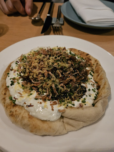The first dish came out promptly which was the beef flatbread. It was the cheapest and the most flavoursome dish on the menu. The portion was easily divided too to share. This set the bar high and the ideology "oh perhaps the server was correct advising me on the dishes" While waiting for the next dish I envied the pork belly skewer being served next to me which looked amazing and quantiful for the price, unfortunately it was the dish I'd dropped to fit the criteria.