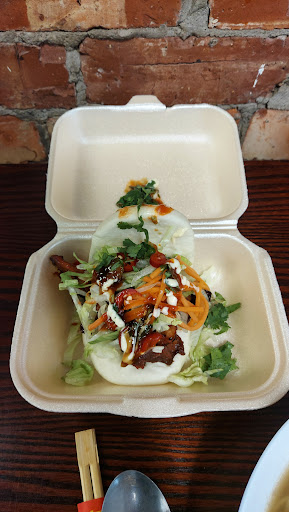Grilled chicken bao bun It was a bit plain to me. All the ingredients in the bao bun didn't have good combination. It's not like it taste bad, it's just the flavor was separated. The pickled radish & carrot taste delicious tho. Chicken meat was tasteless, at one point I felt like I was eating donner meat. It's kinda inconvenient to eat as they serve this dish in lunchbox, all the ingredients will just fall apart when you try to grab the bao bun. I'd suggest the owner to serve it in a paper bag instead of lunchbox.
