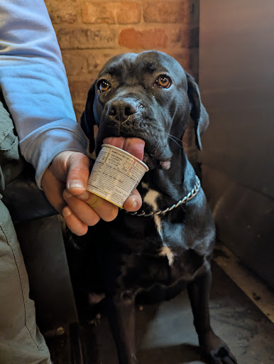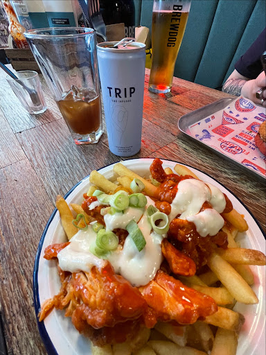 Read moreThe first time me n the mrs fell into this brewdog we'd been refused entry to most of the identikit 'pubs' on deansgate.(There loss as we are aging,unreconstructed boozers who really do like a pint.)Brewdog welcomed us with open arms.literally.we had the hounds in tow,and they were treated to an unnacustomed amount of fuss and attention,including treats and doggy beer!theyll be getting ideas above there station.but i dont mind because the booze is top notch.the mrs prefers a fruit based beverage(obvs)and she says the wine(and one celebratory prosseco)were delicous.we got thoroughly rat arsed.we did eat.it was great grub,but dont ask me what it was called.deep fried meat,chips and hot sauce.boozing food of the highest quality.the mrs had a sundae.she was contemplative and whistfull whilst she ate it in a way that reminded me of earlier times.she says it was lovely.we ended up staying longer than wed planned.in part because getting up seemed so disagreeable,but mostly because we were having such a good time.not sure if the 'choons'are always such a good spread of old fogey funk and punk classics,but that afternoon they suited our 'vibe' to the point where we threw caution to the wind and got the dogs there own pack of porky scratchins,to hell with the flatulent fallout.we're all friends here.eventually we had to get the train home.our bones were sore from all the 'couch boogy'.great booze,great staff,great...