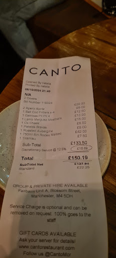The warmth of Manchester's hospitality truly shone through at Canto. Thomas, who took our orders, deserves special mention for his exceptional service, particularly his thoughtful attention to my daughter's shellfish allergy (even suggesting she scan the QR code to check ingredients). He demonstrated the kind of care that makes visitors feel at home.