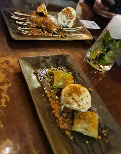 Was really surprised at how very decent the food was here. We ordered the lamb chops and beef bao buns for starters. Lamb chops were served on a mini charcoal grill and were sublime - an amazing medium rare - but get those chops off the grill if you want them to stay like that. I guess the purpose of serving them this way is so that you could do them to your liking. But they were well marinated, tender and juicy. The bao buns were decent as well, they were a saucy sort of shredded beef in a bao bun - they could have done with a tiny bit of freshness to elevate the dish slightly but were not bad at all. For mains we ordered the black onyx ribeye and it was a superb cut of meat. It came out rare but also served with a hot stone to allow you to cook it to your preferred doneness. I would much rather skip the hassle of cooking the steak myself but the meat itself was really good, very tender and juicy - it was also a generous 12oz. The accompanying peppercorn sauce was ok as well and tasted like it was cooked using beef drippings and fond. We also got a wagyu burger but this was soon forgotten. They had done the wagyu burger to a perfect medium rare but I felt like the bun was a about a day or so past its best. But this place isnt about the burgers its defo about the steak. We got a side of pomme puree which turned out to be a little lumpy but very buttery. The palestine mojito and classic mojito were both very good mocktails with the palestine mojito coming out with a whole fire and dry ice show. The steak was similarly brought to the table in a dramatic golden box with all the dry ice you could want. Nice surprise to get a dessert on the house with our meal. This was a nicely dressed baklava dessert with turkish ice cream. Very nice touch. Atmosphere was a little loud inside and so this might not be the best place for quiet conversation but the servers and staff were fantastic. We arrived towards closing time but were not in any way made to feel like we received any less service because of it. All in all very pleasantly surprised at this little steak house, and am glad we went. Not the most refined meal but a memorable...