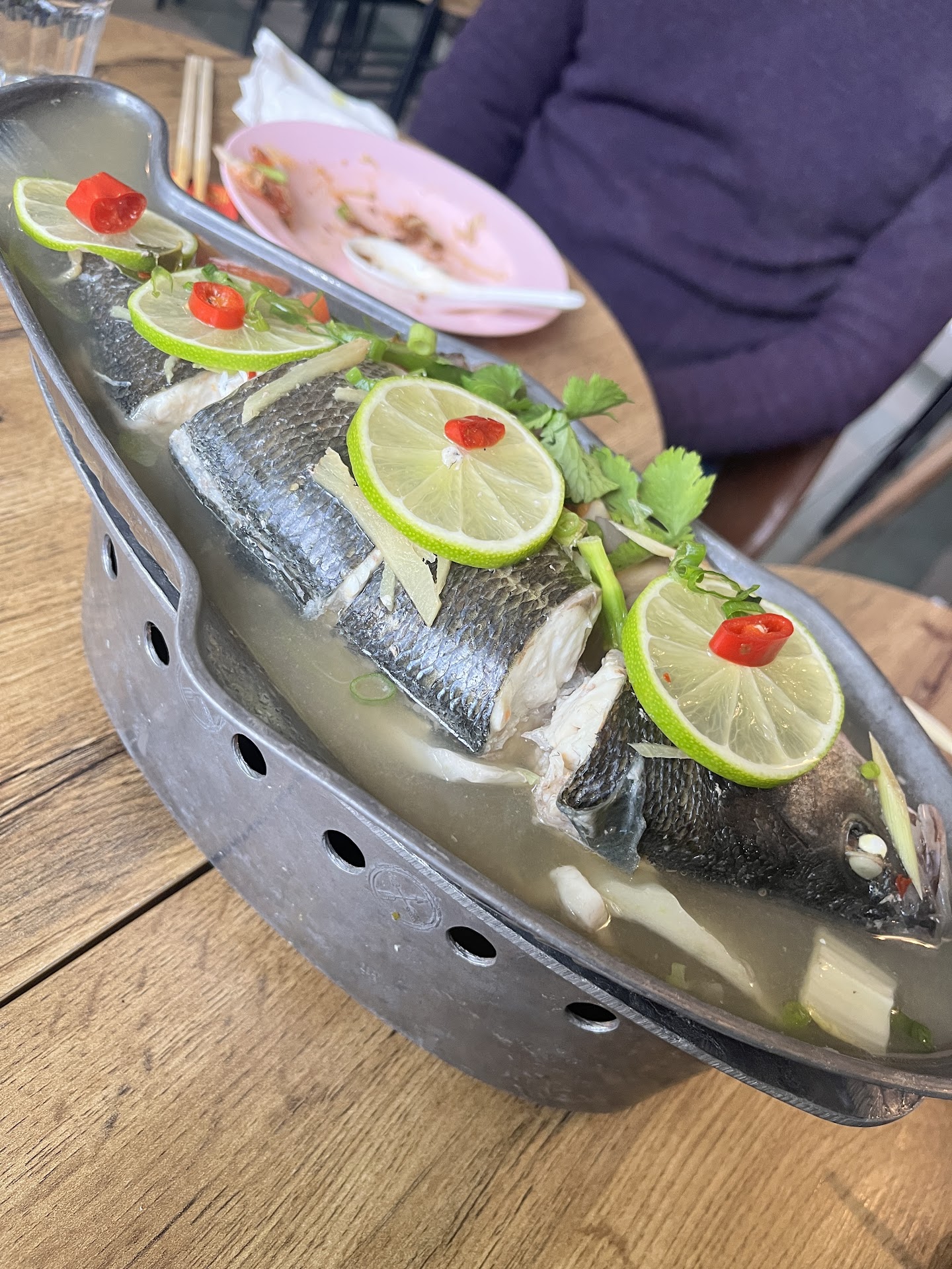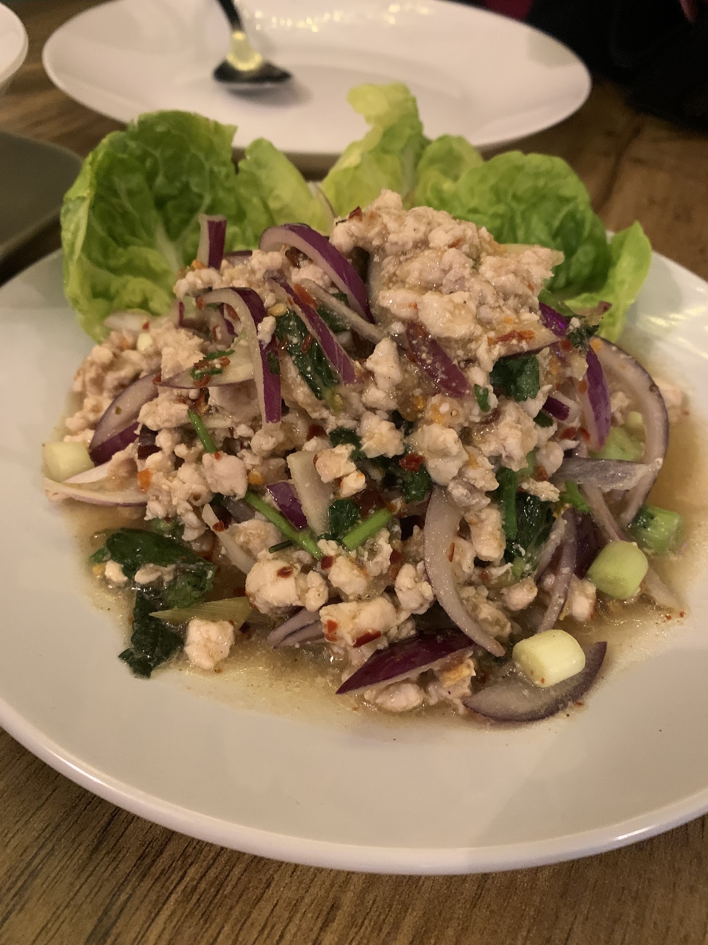 Really great, small restaurant (about four tables of four people), very friendly staff. Ordered the satay, papaya salad, penang curry, a beef and basil stir fry and some veg. All were top top quality, really authentically Thai, and instantly transported back to Phuket!