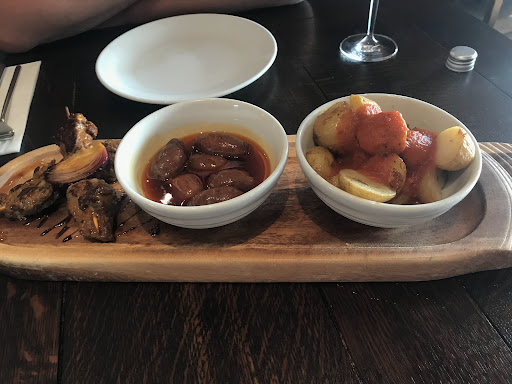 Visited for the first time today (15/07/18). The place is easy to find and is wheelchair accessible which is great. There are a few two-seater tables outside which would be a good choice if you’re visiting for drinks, probably not as suitable for dining as it’s pretty close to the street. The wine menu offers a rich selection of wines to pair with your meal. If you’re a white wine lover I’d definitely recommend Ondas del Alma- very fresh, smooth, light tasting wine with the same alcohol content as a crisp, dry one. The athmosphere is relaxed and comforting, very cosy. The staff are friendly and attentive and ensure your satisfaction with the experience at the restaurant. Now about the food, as it is most important. First we ordered 3 tapas, which were on a deal for £10.99: Patatas bravas, Chorizo al vino and beef skewers. The skewers were very tasty and the meet was perfectly cooked. Personally I wasn’t very impressed with the patatas bravas as it seemed if they were just new potatoes halved and roasted, served with tomato sauce with paprika; where’s the authentic patatas bravas are pre-boiled and deep fried which gives them the signature crispiness on the outside. I suppose it might be an aim to offer a healthier version by roasting the potatoes, but that turns them into roasted potatoes, not patatas bravas. The chorizo was small chorizo sausages instead of slices which caused them to be soggy and soft instead of the signature firm chorizo slices. Moving on, we ordered octopus with potatoes and calamari, which were both amazing, served with beautiful agli-oli and paprika tomato sauce (same as patatas bravas one). We also ordered mains: seafood paella and salmon and lobster skewers with rice. The paella was great! It was cooked to perfection, packed with fresh seafood and delicate saffron. The skewers were truelly amazing- the crispy salmon skin contrasting with the soft, juicy salmon meat and flavourful lobster made my day! Served with white wine sauce- simply perfect. We finished it off with a delicious chocolate cake served with sweetened condensed milk and vanilla bean ice cream which was honestly the best chocolate cake I’ve had so far. In total for 5 tapas, 2 mains, bottle of wine, dessert and coffee we paid £90, which is great. We would definitely revisit...