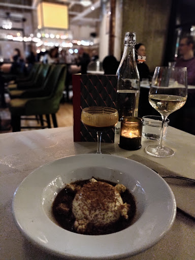 Read moreI was recommended their sister restaurant Sur in the north of Manchester, but decided to try this new location - and I'm very glad I did. It felt energetic as soon as I walked through the door, with a DJ in the middle of the room, three food market stalls around the main seating on the right, and a large bar on the left. The welcome was immediate and warm, and I was very quickly escorted round to a group of more intimate tables in the corner facing the bar, which suited me perfectly. From there, I could watch the world go by, and I didn't feel awkward about eating on my own (I was in Manchester for one night for business). I was given a menu - three different themes, matching the three food market kitchens I had seen when I entered: one Scandinavian, one Basque, and one Italian. There's a good selection on each - you can order across menus (Scandi starter, Basque main etc) but I was in the mood for Italian, so ordered from the Sur menu. Drinks order was quickly taken - a carafe of Northern Macedonian white, which was excellent - and a bottle of clear fresh water added to my table, with a glass poured for me. I asked for some help to order, and Sophie - who waited on my table and was fantastic all night - helped by discussing options. We settled on the orecchietti with house sugo for main, with the fennel & radicchio orange salad as a side, and the rosemary & garlic sourdough bread. I have to say, writing this two days later, my mouth is still watering - the salad and bread came out first, and the two flavours worked so deliciously together, I could have eaten that all night! Aside: a lot of reviews mention the saltiness of the food. I loved the full flavours, but they are strong and the salt in the bread draws out the sweet and sour taste from the dressing on the salad. The orecchietti felt almost bland after the taste assault of the bread and salad, but actually it went really nicely with the wine. I decided, after a discussion with my partner in crime Sophie, to have the tiramisu dessert (frequently recommended) along with an espresso martini. I usually steer clear of strong coffee in the evening, but this combination was exquisite. I loved the thick coffee texture of the cocktail, and the tiramisu is split into its constituent parts so you can choose to combine them as you wish - biscuit, mascarpone and alcoholic sauce. Delicious.