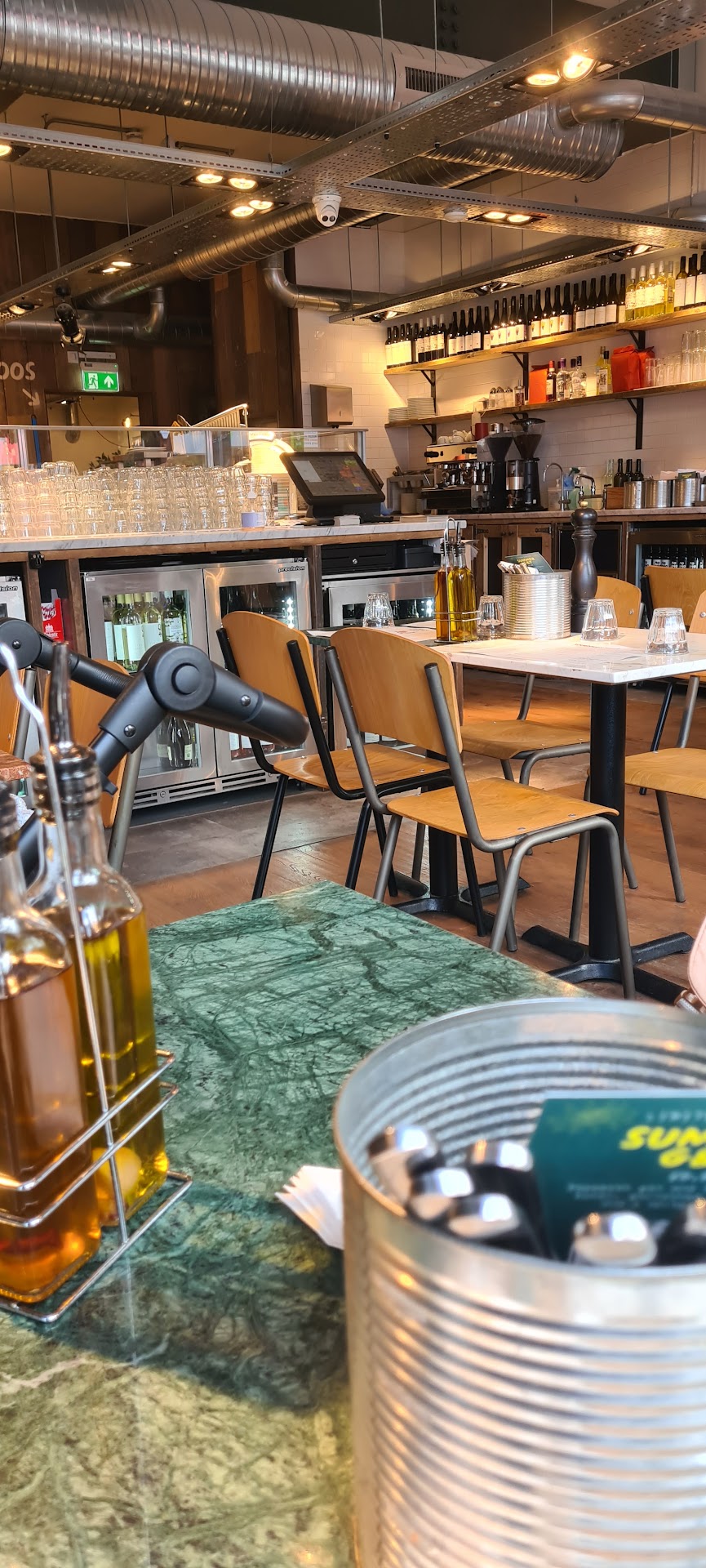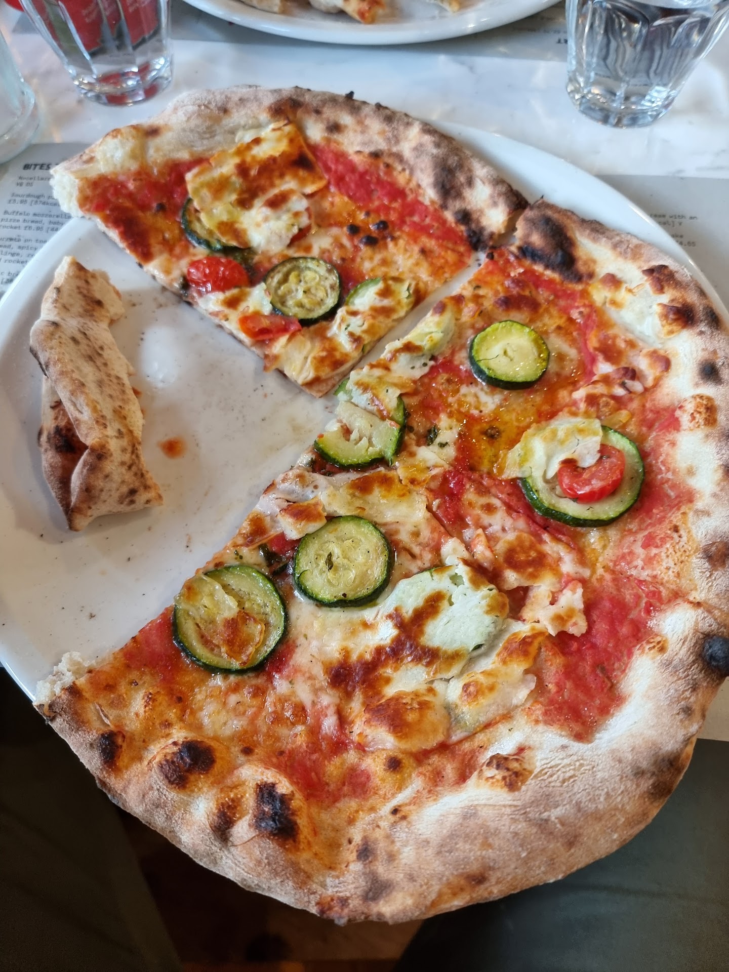 We have to look past these issues as teething troubles rather than part of a bigger problem of the restaurant. Ok, the dirty table and bottle shouldn't have been in that condition regardless of how new a place is, but you have a young, energetic team who were welcoming, positive, and represented the ethos and vision of the business. I was not charged for the pizza, even though I ate it (apart from the doughy crust) - I would have paid, but the gesture was kind. Maybe the pizzaiolo (who was on his own) just needs to relax into his role here and not rush things (it happens to all of us); people will wait for good food. And indeed, it is good. Creative pizzas far from traditional Neapolitan with a lot of Spanish and Greek ingredients, but pizza is about whether the ingredients work, not where they're from, and the selection will not disappoint. I was pleased to see the 'nduja is from Spilinga, so clearly research has gone into sourcing products (and stating the calories by the dishes and most drinks is a good move).