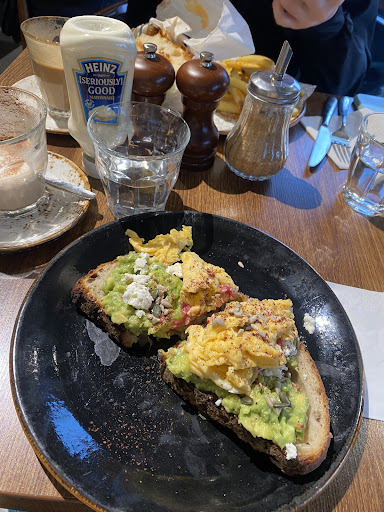Read moreMy friend and I came in on a very busy Saturday afternoon for brunch and were grateful to be seated after a 5 minute wait, which we were happy to do. After being seated we were attentively managed by two members of staff who were really polite and helpful. Unfortunately I was really disappointed with the avocado on sourdough (with substituted scrambled egg, beetroot humous and feta) as I found it very bland, something that I thought would be a safe and easy option to judge for our first time visiting. Salt and pepper helped the situation but I do feel like seasoning is a bit of a basic prerequisite and the dish itself could have done with something sweet/salty and acidic to bring some much needed life to the dish. The black plate it came on was marked all around and picked up any fingerprints or spillages so even if it was clean beforehand, it didn’t look like it was. For £12.50 I found this to be punching above its weight for one slice of sourdough plus toppings. My chai latte was a little disappointing too however, my friend enjoyed her flat white but also found her sandwich nothing special. I think more attention to detail with the flavour and plates is much needed for Hare & Kin to be worth the price tag or...