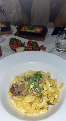 Interior was nice, service and speed of food was great, food was tasty but i think don giovanni is slightly better as they had halal parmesan to put on the food and were more generous with portions (my friend paid £4 to add chicken in her tagliatelle and it was about 3 pieces)! i got the mushroom tagliatelle and also got the tomato bruschetta which was a bit overpriced for what i received, was expecting tomatoes to be chopped finer like i’ve seen at other restaurants but it tasted nice! Also got the the strawberry raspberry mocktail, this was disappointing tasted like unripe strawberry and water for £8.50, they need to add syrup or something to make it taste good! Also the servers are weird when it comes to the service charge, I explained we were students so we’d need to remove it but that the service was great and we would definitely write a good review for the server who was called paulo, then my friend went to pay with her card and he tried to charge her with the service charge even though i’d told him not to which i can tell was by purpose as he was hiding the card reader amount from me and only showing her as she didn’t know what amount it was meant to be, he manually wrote in the amount on 3 occasions during this so it wasn’t like there was an automated error he was very conniving about this, luckily her transaction didn’t go through as her card was faulty and when i got to paying i told him to remove it again and he was acting sheepish about what he’d done, either he was just greedy for extra money or the restaurant isn’t paying him a legal wage, this is the UK and tips aren’t necessary never had this treatment anywhere that we’ve been before, stop trying to rob innocent students, we should be able to treat ourselves to a night out without having to pay for someone’s wage and you as a server should be giving good service regardless of tips,...