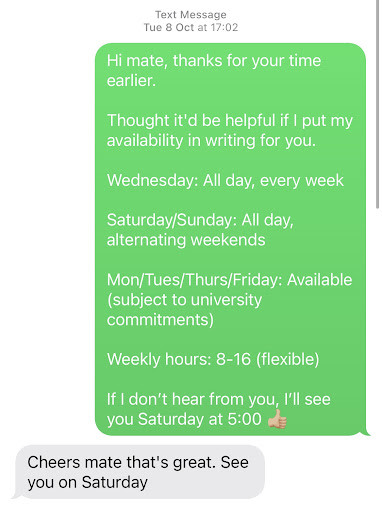 I enquired about any part-time vacancies to run alongside my master’s degree and made a verbal agreement with Joe to undertake a 2.5 hour paid trial shift. I attended the trial shift, and was supervised by Rachel who was friendly. The owner, Jake Shaffi, visited the shop during my trial shift with the attitude of an arrogant 16yo boy, he refused to acknowledge me (a potential employee) despite Rachel and myself making genuine attempts. It was very strange behaviour, he appeared to be intimidated by my presence because he’s a slim man, and I have an athletic build.