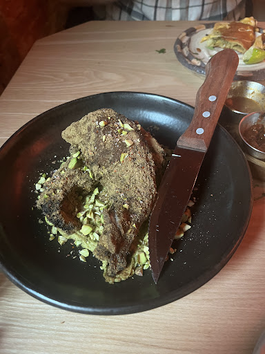 Next up, Lamb Chops. I was really looking forward to these and I was so disappointed when they arrived. To begin with they looked dry and slightly burnt on the plate. They were covered in cumin spice which seemed to have been applied extremely liberally. I found them very claggy on my palate. There was a nice avocado paste on the plate but again ruined by too much powered spice.