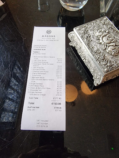 We weren’t impressed on this occasion, or the last time we dined here during the pandemic “Eat out to help out scheme”. Its a terrible shame as we have dined at Masons several times before the pandemic, but it seems to have lost its quality, atmosphere and high standard of service we experienced on previously.