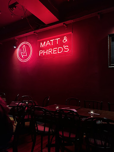 when we arrived, about 15 minutes before the band was supposed to go on. The venue was absolutely busting full, we thought this was a good sign! But turned out there were about 10 tables of people sitting right in front of the stage, eating their delicious looking food, and everyone else was squeezed back in front of the bar. This meant navigating through the tightest knit crowd I've ever seen to get to the toilets, the bar, anywhere. And forget about seeing the stage!! There was even a bouncer guy "protecting" the people at the tables eating from us peasants at the back. The band was so fun, but no dancing room!!! It was ridiculous. When it was clear this was gonna stay this way we left, knowing that we would just get frustrated from not seeing anything and having people elbow is all night. It's obvious that for a gig night for a bit festival, the venue should not have food serving and make lots of spacious standing room for their patrons!! But our disappointment doesn't end there. After leaving we went for a bite elsewhere, but then thought we'd check back to see if the crowd had dispersed a bit or maybe they'd cleared the tables as it was getting later in the night. At the door, we showed our stamps but the bouncer said "you're not welcome back here, you've been asked not to return". Very confused, we asked what he meant, as we'd had not interacted with anyone except for buying a drink. He said "you were kicked out". We said that we don't think we had and he looked at us very dubiously. He said he'd have to check with the staff inside and looked really suspicious of us. We said that was fine and then he looked at us again and let us in! This was such an unexpected and bizarre thing to happen, and left such a bad taste in our mouth. Honestly Matt and Phred, it's not that hard to make your customers feel welcome and like there's space for them...and we felt none of that. Poor management I reckon! The bar staff on the other hand were so nice and obviously working so so hard. Props...