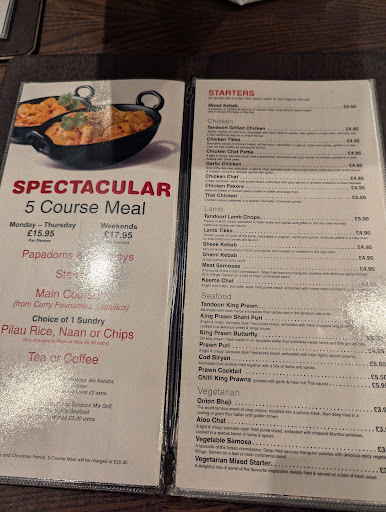Read moreIt was a Tuesday night. The place wasn't crowded, as you can imagine. One waiter and the owner were serving. We spent about 2 hours there and not because we wanted to but because of the unexpected delay in serving us. We waited around 20-30 min for the poppadoms to come, fine. The starters came after another 30-40 min. Incredible, I know. When the mains finally arrived, we weren't hungry anymore, had a little and took the rest home. The food was alright. Nothing special. The price of the food reasonable. But the waiting made everything not worth it. Very dissatisfied. Oh! If you are gluten free or celiac, the mains are fine, but they fry everything in the same oil and there's plenty of battered stuff. I wouldn't risk it...