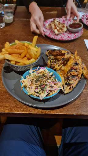 Read moreLet me preface this review by saying that this was my first ever time eating at Nando's, and to be completely honest, I don't see what all the hype is about. Now that's not to say that the food was bit, it wasn't, but on the same hand it wasn't anything special either. The Rainbow slaw was actually a let down, it tasted okay but it was just too dry, I'd recommend the normal slaw instead. I got the 1/2 chicken at medium spice and the portion size couldn't be knocked, it tasted nice as well, although there was an odd dry bit here and there but nothing major and most of it was nice and moist. The peri chips are a must have and were very tasty! The main gripe I have with this place is the fact you have to go to the counter to order or scan a QR code on your phone at the table - maybe I'm old fashioned but I find the idea of going to a restaurant and ordering via a QR code extra hassle and dehumanising, why can't they just come over and take the order? This obsession with mobile apps is destroying the fabric of eating at restaurants, I don't mind having it as an option alongside table service. When I did interact with the staff they were all friendly and helpful. Nando's seems to be hyped by basically most Zoomers out there and while it's decent, and the prices are reasonable, I personally don't think it's my kind of place. Overall a fairly lacklustre meal hyped by the army of Nando's fanboys/girls. I will probably never voluntarily go to Nando's...
