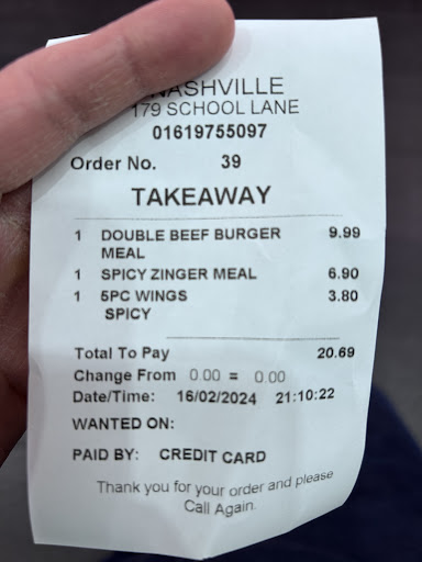 Ā Ā Ā Read moreMy recent visit to Nashville Burger in Manchester left me extremely disappointed and frustrated. The poor service I encountered was beyond unacceptable and left me with no choice but to leave the establishment without even placing an order. It is with regret that I write this negative review.