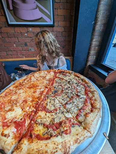 Read moreSo where to start. Clearly a “trendy place” and if like me you’re now past middle age and wanting a quiet meal, on your own, this is possibly not the place. Why? Well I sat and listened to a young Canadian lady chat to her two mates about how many “boys” they’d recently knocked back, and worse, those they hadn’t! In short privacy whilst eating is not happening so bear this in mind especially if visiting for a family or couples meal! As for the service, really friendly but somewhat confused, my starter (salad) ended up on another table whilst theirs (olives) ended up with me, sorted fairly quickly and apologies from the chap serving. The salad was a good size and had great flavour. For the pizza I ordered the sausage, it came out piping hot and it was a really good size (I struggled) but sadly without the dipping sauce, or my drink, again query raised and resolved quickly and again apologies offered. The pizza to me was less New York style and more European ski resort, don’t get me wrong it was good, but it’s not as crispy as a NY pizza but still had a decent flavour just possibly a little greasy. Overall a reasonable experience, not overly cheap at £30 for a pizza, side salad and a pint but I enjoyed it nonetheless (next time I just need to remember air pods...