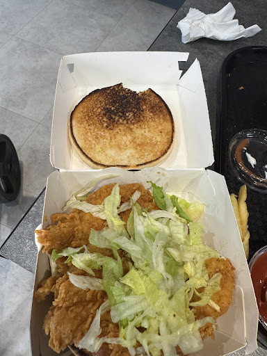 Read moreThe outside stands out and looks inviting, the inside is very nicely decorated with a feeling of originality and cleanliness. I ordered a chicken burger meal and it came out smoking hot straight out the fryer, you could just tell it was fresh, real chicken not the frozen stuff you get at wholesalers for £5. The meat was well cooked, so much that it was juicy and tender, and the breading it was coated in was something special, notes of different herbs and spices floated on top my tongue providing unexpected delight to my taste buds! Now the chips? They were good quality, not the flimsy, soggy type that you get at most places. These are what chips should be; salted, hot and crispy with a thick fluffy centre and especially with the seasoning that came on them that I can only assume was made in house because of its surprising addictivness, these came to be some of the best chips I, personally, have ever eaten. Yet that wasn't the only addictive thing on the menu as the chicken burger itself was coated in what's supposed to be the restaurants signature sauce Now, only one word for the sauce EXCEPTIONAL it provided an extra depth of flavour, not that the chicken itself needed it as it was already beautifully seasoned, it provided a party for the taste buds to enjoy; sweet, salty, smoky, tangy all in one! And balanced perfectly to the T. Condiments were a tub of chili and mayo sauce which tasted nothing special but overall alright. In all the flavours just worked and for £3.99, I think that it was incredibly tasty, filling and cheap. 100%...