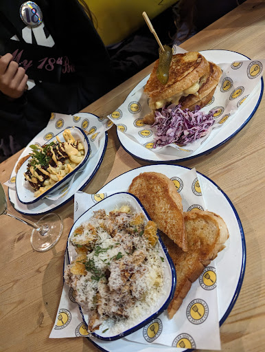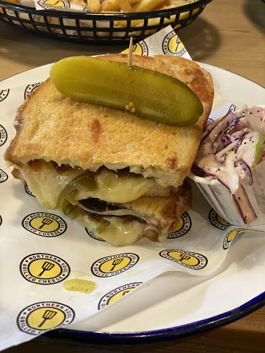 I have heard about this place from various people who recommended it, northern soul started life in a small side hut just down the road from there current location, so they have really come and grown since there humble beginnings. As you walk in you will notice the atmosphere which is great, the music being played in northern soul, it's not overbearing or super loud and if with someone you can talk comfortably, a member of staff will greet you and sit you at a table and go through the menu. The menu consists of well... Grilled cheese sandwiches and chips or Fries for my American Freinds, if you haven't been before I recommend one of 3 classic sandwiches that put this place on the map they consist of 3 cheeses blend, ham and cheese and I can't remember the other sandwich, I went with ham and cheese and there house fries. The sandwiches are large and delicious and come toped with a pickle and slaw (I think ) and the house fries are spicy, all in all delicious!!, I struggled to finish my food just due to size of the sandwich, but the taste is out of this world. I noted on the menu they have a selection of beer that you can buy with your meal as well, my meal came to £16 and that's with a sandwich, a soft drink, house fries, so good value for money. So, if you are in Manchester and looking for a decent meal then go check this place out, oh you need to know it's card only for payment, they refuse cash, which is a minor complaint I have...