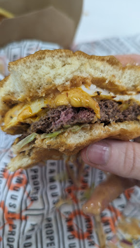 Read moreFrom first walking in, I should've walked back out. The guy on the till was very unfriendly and immediately began rushing me to order. The place was empty. No one sitting, no one waiting. It was my first time in the store so I felt pressured to choose without really looking. He told me "5 minutes" and we sat down. 5 minutes turned into 20 minutes before the food actually came. On sight, it looked fine, but the kids beef burger had pickles which I hadn't read in the description, but may have just been because I was being rushed. My burger, the Signature, I also wasn't aware would be a bit spicy but again, probably hadn't been allowed to read that. The beef burger was raw in places, not just in the middle but at the edges, too. I've attached a photo of this. It was overall very underwhelming food, same as any takeaway, but at double the price. I would not...