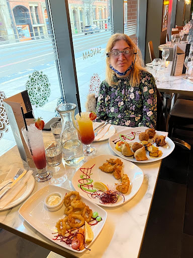 We spent a month in the UK and had some genuinely wonderful Indian food — in London, Birmingham, and even other places in Manchester. We met fabulous people. The UK is a diverse, vibrant, and culturally rich country. Sangam trades on location, and polishes their websites with flowery language.