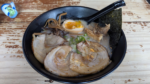 A gem of a ramen bar in Chorlton. It's small and cosy inside so worth booking a table especially at the weekend. Always a warm and friendly welcome and you're not rushed to order or rushed to leave. Very clean and with the open kitchen, you can observe the chefs at work. Food is superb. I had the Ike no tonkotsu on both occasions and it is consistently delicious. The broth isn't overly salty unlike other establishments in Manchester. It is creamy, and loaded with flavour. The noodles have a wonderful chewiness to them and the bbq pork is soft, deeply flavoured and moreish. The entire dish is filling and very slurpable! The chicken teriyaki was heavenly. A warming, savoury-sweet glaze that makes you want to lick the plate clean. The mean perfectly seasoned and cooked well. I also sampled a portion of avocado hosomaki and was blown away by the amount I was given. The avocado was experty cut, no skin or stone attached. The rice was soft and seasoned well. It came with lovely touches of radish, pickled ginger and wasabi. I can only imagine that the other sushi dishes will be equally delicious. The menu isn't vast which I like because you know that everything is cooked from scratch and cooked with passion. There are halal and vegan options available and they are halal certified.