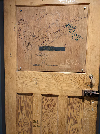 You could very easily walk past this place and not know it was there. A small sign and small lamp above a discreet door could very easily be missed. However, as you enter the doorway a huge blue hand and the word “BAR” painted on the wall let you know you are in the right place.