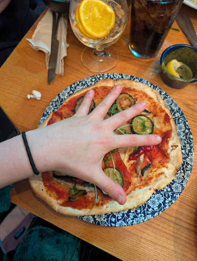 This was the tiny size of the larger pizza option (I didn't order the smaller option off the small plates menu!). It had practically no (vegan) cheese on it. The food was dry and flavourless. I know this may seem out of touch as it is well known you get what you pay for, but usually Spoons pizza is actually pretty decent so this was disappointing.