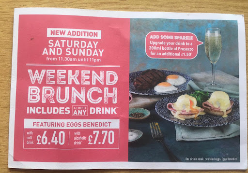 Read moreThere's not much you can say about a Wetherspoons that can't be said about any other Wetherspoons (apart from the ones you know you shouldn't go near). This is a rabbit Warren of rooms and tables without TVs every 4 paces and at least has that difference going for it. It is however lit like your nan's front room and is so bright you would think you were in a Holts' house from 20 years ago. The mix of tables and rooms and chairs invariably ends up looking a mess and almost un-navigable. When we visited at teatime on a Sunday it was a soggy tip. The rain outside had reduced visitor numbers but the tables weren't being cleared or cleaned too regularly. Using the app brought drink and food quite quickly and the staff were really friendly. The toilets - historically very nice in this pub - were awash that day. I may be a man but there seems to be some kind of blokes who need to leave the whole gents toilets as wet as they can. I'm not sure whether it's an aim problem or a need to bathe in the sinks or just a sociopathic disregard for anyone else. Anyway, I was glad I didn't have summer footwear on. It's not a bad 'Spoons all in. If that's a good thing, I'll...