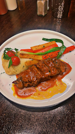 I had a fillet steak with creamy peppercorn sauce, steak cooked medium rare. The meat was tender with hardly any stringy meat. Cooked to perfection. Roasted vegetables had a spice to them as did the peppercorn sauce which gave the dish a kick. The creamy mash was lovely, no chunks and served hot.