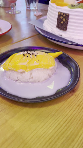 The mango rice was salty, not sweet, the white sauce was too thin and the mango was not sweet.