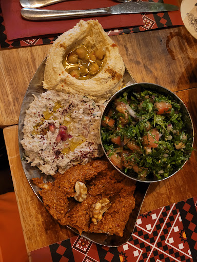 I have come here on multiple occasions and the food is just wonderful. I would just order as many small dishes. As you possibly could think that you might be able to eat with you and your friends. As mezze food goes I would honestly say staying within the confines of the cold and hot starters is the place to be, although I have also shared the mixed grill a couple of times when ordering in. The Babaghanouj is the best I have had in Manchester, I have been known to make sure i get the lions share of this on the fresh pitta as it makes me so happy.