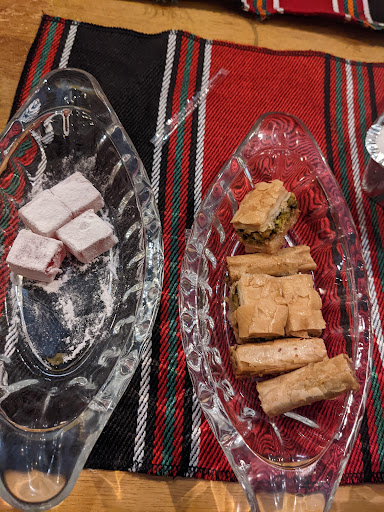 This time it was very disorganised. It took a good 20-30 minutes to have the food order taken. No drinks order was taken, one friend had to go to the bar to make her order as they did not come over. Everyone's food arrived at different times, one persons food did not arrive until everyone else had almost finished eating (we sent it back and asked for a refund). In most Arabic and middle eastern places kebabs are served with salad and starters with bread. Both these were lacking in here, kebabs came with nothing at all and starters came with a minimal amount of bread. Somewhat disappointing for the price. I had not realised this as on my first visit I had ordered a stew.