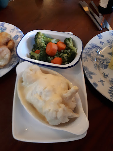 2019 - I am literally sat here waiting for food, not only did they not have 4 mains and 2 starters but when we paid extra and ordered the lamb, that wasn't in stock either... the starter is missing dressing and napkins, The cutlery is filthy, mis matched glasses for drinks, I am sat here waiting 45 mins for this disgusting meal... Bear in mind there's only two tables of people in the whole place. the mash potato is solid, the pigs in blankets burnt, roast potatoes look like crisps and only 1 side of veg between three of us yet we all ordered and paid separately, the cauliflower cheese has a skin like a wet suit .... just got a full refund as this was...