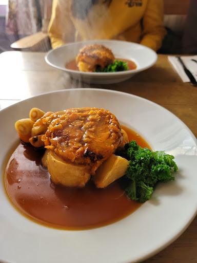 Only reason for knocking down a star is really the inside eating area is so small and not all that comfy or personal... Our chairs were basically touching the chairs of those behind us and it made it difficult for staff to get through or even just being careful when getting up from the table yourself not to crash with the person behind you. Unfortunately due to the small area I don't know what could be done. With this in mind definitely book, if you're wanting an inside table. We went in winter and the rain so this was essential, there is an outside beer garden area where I'm sure more could sit in finer and warmer weather.