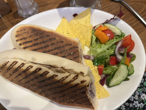 Myself, my mum, sister & niece visited Time Out on a very rainy Saturday for some lunch. The staff were very accommodating, asking if we needed another chair and letting us know they could get us one if we needed it. Ordering at the counter was easy and our drinks were brought to our table quite quickly. I had a lovely caramel latte (although I don’t think you need a saucer with a latte glass. They make it difficult to carry and can be dangerous). For lunch I had a Stilton & red onion panini which was so tasty, crunchy on the outside and soft on the inside. The accompanying salad was fresh and had a lovely dressing on it and the Dorito type crisps made a welcoming change. All in all a pleasant lunch with lovely, friendly staff at reasonable prices. Would recommend (as long as you don’t need the toilet which is unfortunately not in the same unit and up several stairs which could be a problem for elderly or physically challenged people). Very...