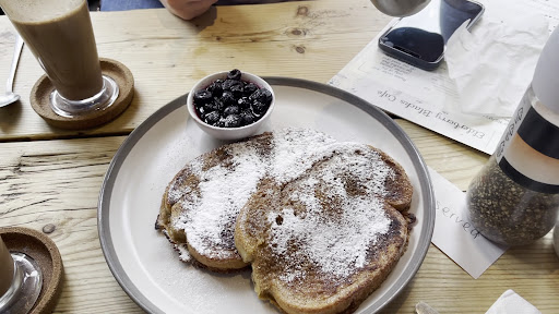 Arrived with partner to this cute looking cafe as i had been recommended by a family member. We walked in and it was an awkward atmosphere as we didn't know wether we seat ourselves or get seated so we're kind of lingering near the front. The staff member noticed us but didn't say anything until i asked do i seat myself or is there set seating. She then went to check for seating and then went to where we're told to go, this was quite cold, dark and empty feeling area. I went up and ordered and the woman was pleasant with the service. Our drinks arrived and they were good but i felt the cold drink i ordered was quite empty and could've had more for the price i paid, but then the food came and we were left disappointed. It looked nice but the whole food just tasted like it had been dunked in water and was soggy which also took away any taste, it was just about warm so became cold very quickly. I would also expect maybe a couple more bits on the plate like another sausage and definitely another slice of toast. Both me and my partner could only eat half our meal due to all this. Unfortunately i wouldn't go back or recommend this place. Maybe it was a one off or maybe i should've just ordered something else but i was left we're disappointed due to lack of flavour and the pure water taste. And my whole meal of two breakfasts and one hot and one cold drink came to £30! Also one thing i would have preferred is the choice between normal beans or smoky beans as i don't like smoky beans and imagine there's more people with the same opinion. It was a good place to try but again i wouldn't return...